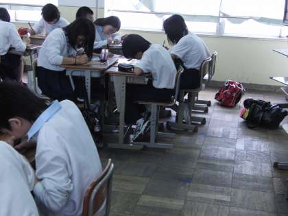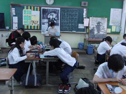2年生は「京都の伝統工芸」をテーマに、調べたことを「点描画」で表現しています。原画をもとに、いよいよ点描に入りました。