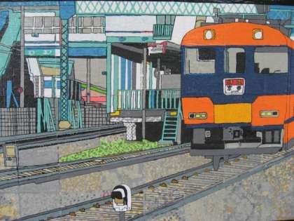 1年生と6組は、「自分たちの住む『向島』」をテーマに、10年後も残したいものについて貼り絵で表現しました。まずは1組と2組の作品です。