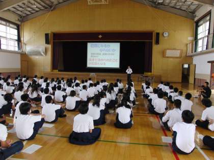 12日(金)3,4限、1年生は体育館で非行防止教室を行いました。ルールやきまりはなぜ守らなければならないのか。非行とは何を意味し、そうならないためにどのように「心豊かな生活」を送るのが望ましいのかについて、お話を聞きました。