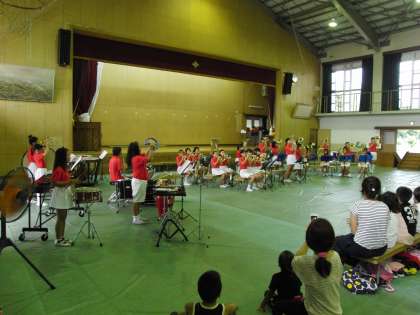 向島二の丸小学校金管バンドクラブは、「へびのロックンロール」と「踊り明かそう」を演奏しました。