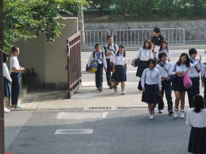 今朝の登校風景。生活委員が交代で毎日挨拶運動をしてくれています。先生たちも「おはよう!」と声をかけて出迎えています。生徒十訓その一「笑顔ですすんで挨拶します」元気に挨拶をしましょう。