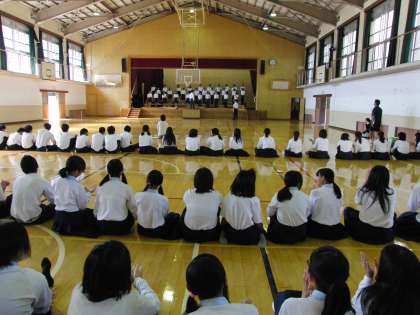 18日(水)6限、2年生は音楽コンクールのリハーサルを行いました。ステージ壇上への入退場のしかたを中心に練習しました。
