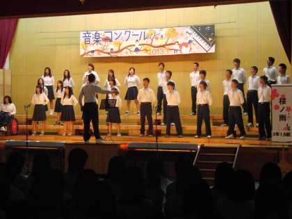 午後からは3年生と6組の部がありました。1組と6組は「桜の雨」を、5組と6組は「証(あかし)」を、4組と6組は「虹」を歌いました。