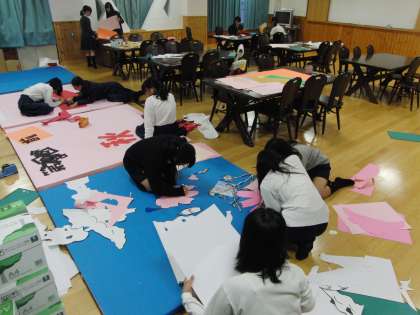 27日(日)に地域行事である「秋の祭典」行われる。美術部は毎年、この祭典の大きな立て看板を依頼され、作製している。祭典を間近に控え、美術部では急ピッチで作業に取りかかっている。今年もどんな素晴らしい作品ができるか楽しみだ。