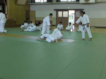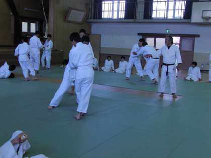 体育の柔道の授業では、今までに習ってきた「技」を使いペアで練習を行っています。受け身をしっかりとれるように、安全に注意して練習しています。始めと終わりの「礼」も忘れずに心がけています。