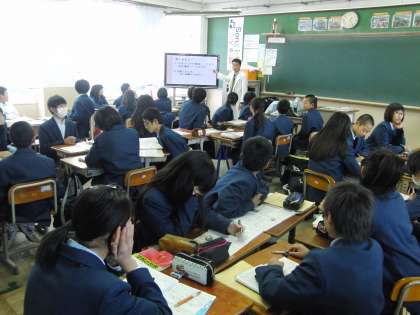 言語活動の充実をテーマとして、公開授業参観が行われました。例年の平日参観よりも多く、保護者の方や近隣小学校の先生方に参観していただきました。それぞれの学級では、「ペアー学び」「グループ活動」「生徒発表」など様々な方法を活用して、言語活動に取り組みました。自分と違う他者の考えや発表をしっかり聞き、学びを深めてほしいと思います。