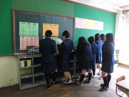 3日(火)より「読書週間」が始まりました。昼休み、学年ごとに図書委員が予め選んでくれた本の置いてある教室で、興味のある本を探す生徒たちの姿が見られました。読書週間は13日(金)まで行われます。