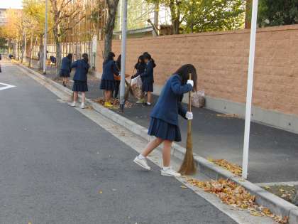 正門東側の歩道もきれいにしました。学校周りの歩道や中庭は、毎日掃き掃除をして下さっている地域の方がおられることを忘れないで下さい。