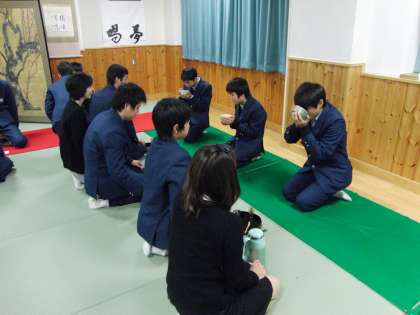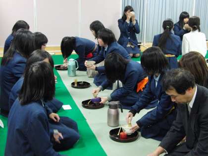 茶道は「相手への思いやり」が大切ですね。その思いやりの気持ちをもって互いにお茶をたてました。いただく人も感謝の気持ちをもっていただきました。