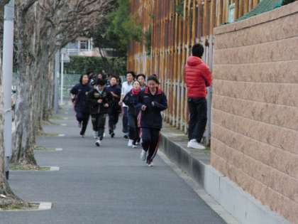 グランドや体育館の割り当てがないときは、外周のランニングなど体力強化に重点を置いて練習しています。「ファイト」という元気な声が聞こえてきます。いつでも生徒は元気です。