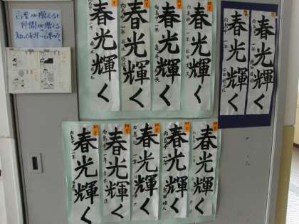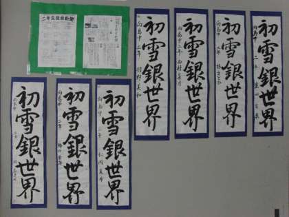 1月らしく廊下に国語科で取り組んだ「書き初め」の掲示がされています。2年生はいよいよ来週に修学旅行で「新雪銀世界」へスキー研修に行きます。