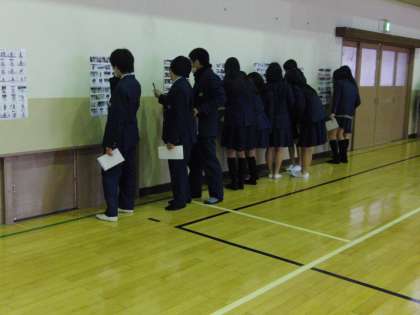 2年生で、修学旅行の際に写真屋さんが撮って下さった写真の展示が5限にありました。たくさん展示されている写真の中から、自分が購入したい写真をメモしました。