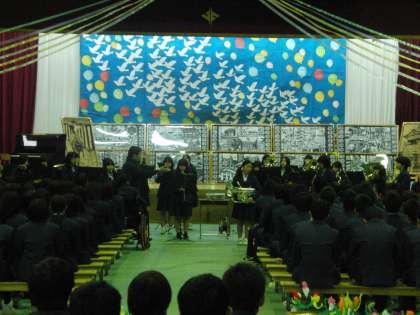 12日(水)1,2限、「3年生を送る会」が行われました。吹奏楽部による演奏に始まり、文化委員長による開会宣言、生徒会本部からのメッセージビデオ、在校生から卒業生へのメッセージと合唱等、心を込めて3年生の卒業を祝福しました。