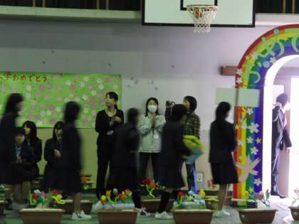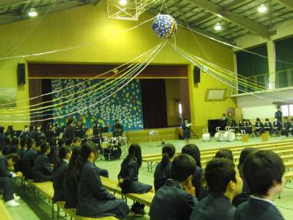 今日の1限目には、新入生歓迎会が行われました。新入生にとって先輩と対面する初めての機会です。ちょっとみんな緊張気味です。逆に、2・3年生は、どんな新入生なのか興味津々です。明るく楽しい雰囲気の中、歓迎会が行われました。