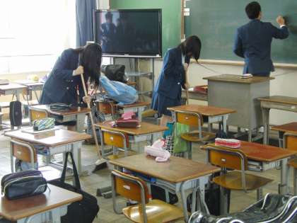 一生懸命掃除をします:教室掃き掃除編