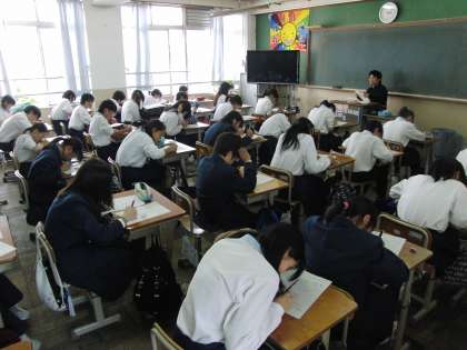 全学年において、総括考査前の放課後学習会が行われています。1,2年生においては、まずは、全員が残り、テストに向けての基礎・基本事項の確認を行っています。そのあとさらに学習を進めようと思っている人は、学習会へも参加しています。