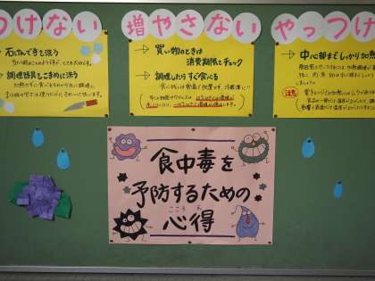 梅雨がやってきます。これから心配事の一つに食中毒があります。保健室前には、新しく食中毒予防のための掲示が張り出されていました。丁寧にわかりやすく書かれていました。みんなも一度しっかり見てくださいね。一人一人の心がけが、確実に予防につながっていきます。