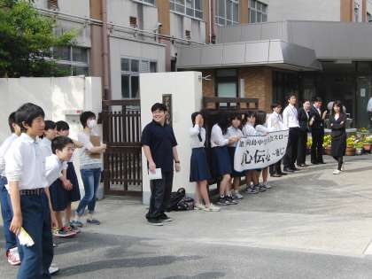 毎月10日を生徒十訓の日と定め、生徒会を中心として、朝から啓発活動を行っています。校門で挨拶運動を行ったあと、放送で呼びかけと全校唱和を行っています。今月の重点項目は、2番目に掲げている「身だしなみを整える」です。先輩たちから受け継がれている行動訓を実践して、規律正しい学校生活を送りましょう。