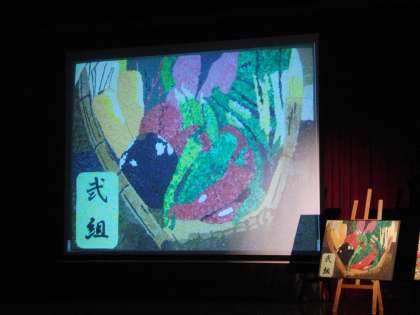 1年生では、「食文化・和食」をテーマに貼り絵の制作をしました。