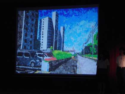 育成学級さんは、「発見・向島」〜ユニバーサルデザイン〜をテーマに、貼り絵の制作を行いました。あべのハルカスや天王寺動物園、向島の地域に出かけ、様々なところで使われているユニバーサルデザインのものを調べて発表し、作品を作りあげました。