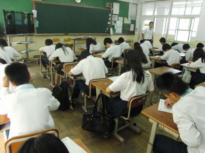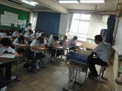 一昨年度より、本校の状況から全学年毎日の家庭学習を英単語に絞って行い、年に3回それを元にした英単語検定を実施しています。100個の英単語の試験をして、認定もしています。