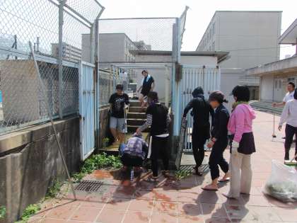 教職員総出で、暑い中汗をかきながら楽しんできれいに掃除されました。