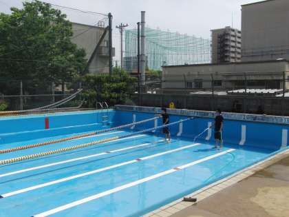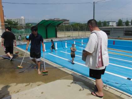 近々始まる体育の水泳の授業に向けて、プール掃除を行いました。