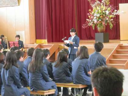 先輩の言葉は、新入生に安心感を持たせたし、新入生の言葉は、中学校生活への期待に満ちていました。
