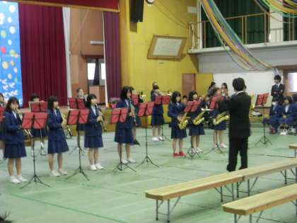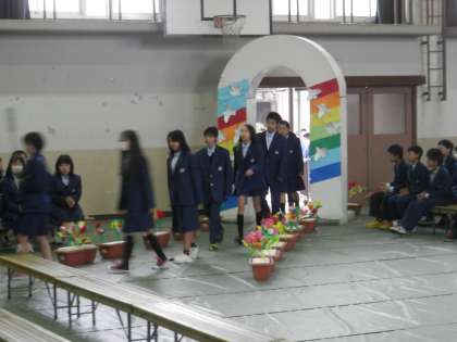 まずは、ブラバンの演奏に乗って新入生の入場です。