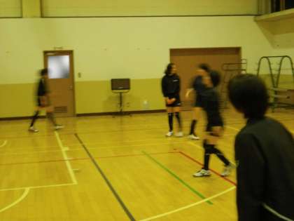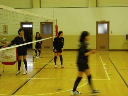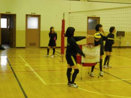 体育館ではバレー部と男子バスケットボール部が活動していました。