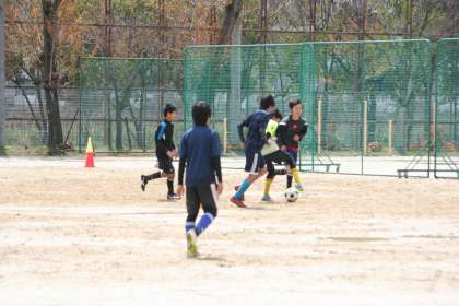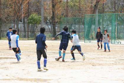 学校へ戻ってきたら、サッカー部が熱心に練習していました。