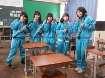 「写真撮ってもいいかな? HPに載せるのもOK? 前の学校では、吹奏楽部の子たちは、とてもたくさん登場していたんだよ。」