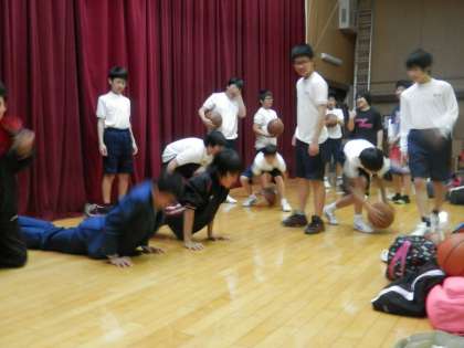 体育館では男女のバスケット、女子バレー部が活動しています。
