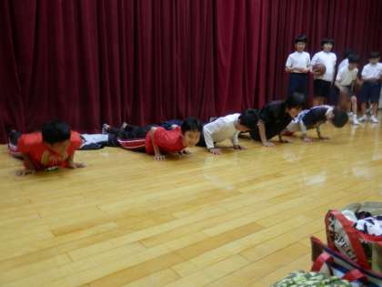 男バスは、練習が終わったのかアリーナから舞台上へ移っていました。