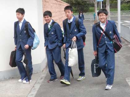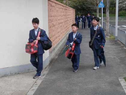 寒い日でも、向島中学校の生徒は元気に登校してきます。
