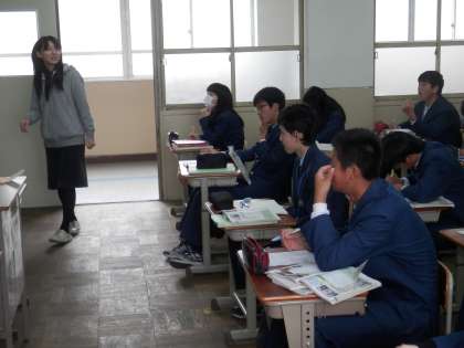写真は、社会と英語の時間の様子です。