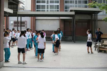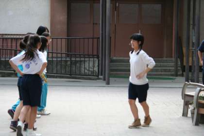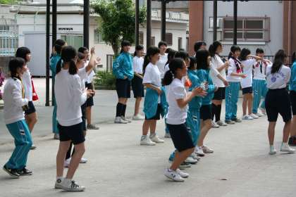 学校へ帰ってきたら、ブラスバンド部が中庭でダンスの練習をしていました。