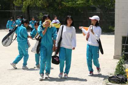 学校へ到着した時、丁度サッカー部と女子テニス部の練習が終了したところでした。