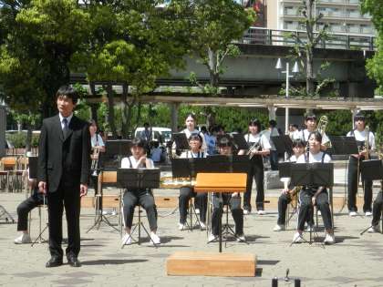 向島中・向島東中・槙島中・京都すばる高校の各吹奏楽部による野外コンサートが、向島ニュータウンの京都銀行前広場で開催されました。