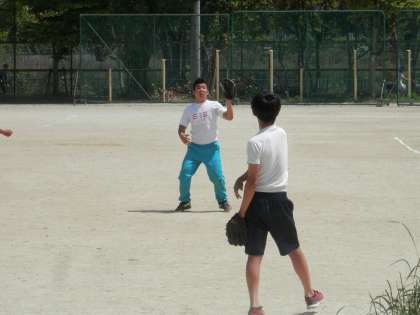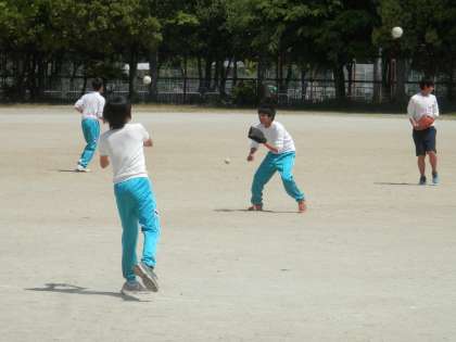 女子は体育館で握力や柔軟性の測定、男子はグランドでソフトボールです。