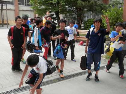 ラグビー部は練習を終えて帰ろうとするところでした。