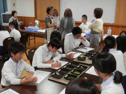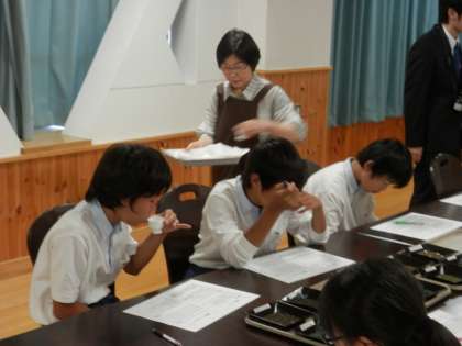 まずは、いろいろ(5種類)のお茶の葉を見比べます。