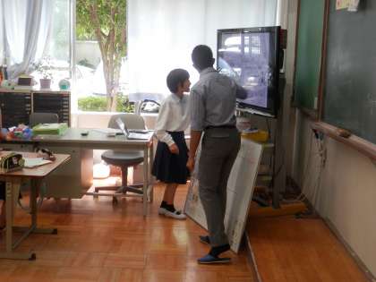育成学級は、ALTのデリック先生を迎えて英語の学習です。