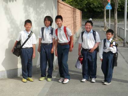 今日も向島中学校生は、元気の登校しています。