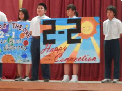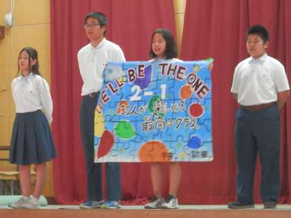 各クラスの発表の前にBGMとともに静止画が流されました。それだけで効果満点です。後の発表のレディネスが出来上がりました。
