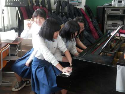 音楽室で撮影しました。