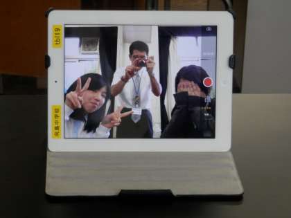 タブレットに写った映像と、久しぶりに出会った小学校の先生とのショットです。