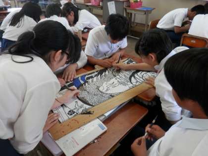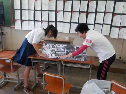 出来上がってきた作品を張り合わせるのは、重要な作業工程です。