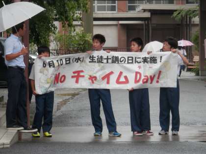 今朝は、そのことを意識づけるために朝から生徒会本部役員と委員会の人たちがキャンペーン活動を行いました。