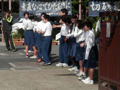 向島中学校の生徒は、みんな今日も朝から元気です。
